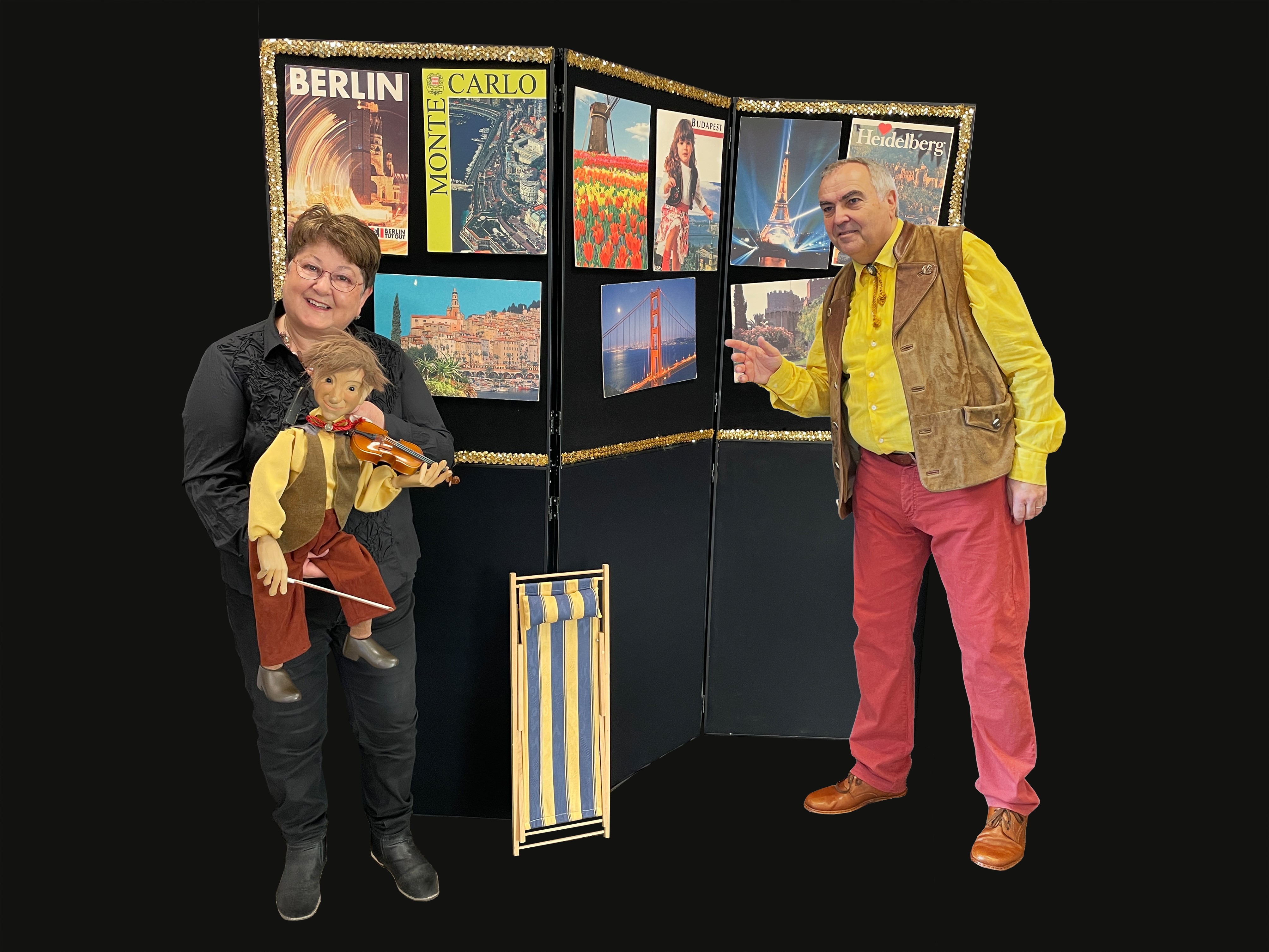 In dieser fröhlich-nostalgischen Unterhaltungsshow wird das Publikum mit Musik und einer liebenswürdigen Marionette in verschiedene Länder und Städte der Welt geführt.